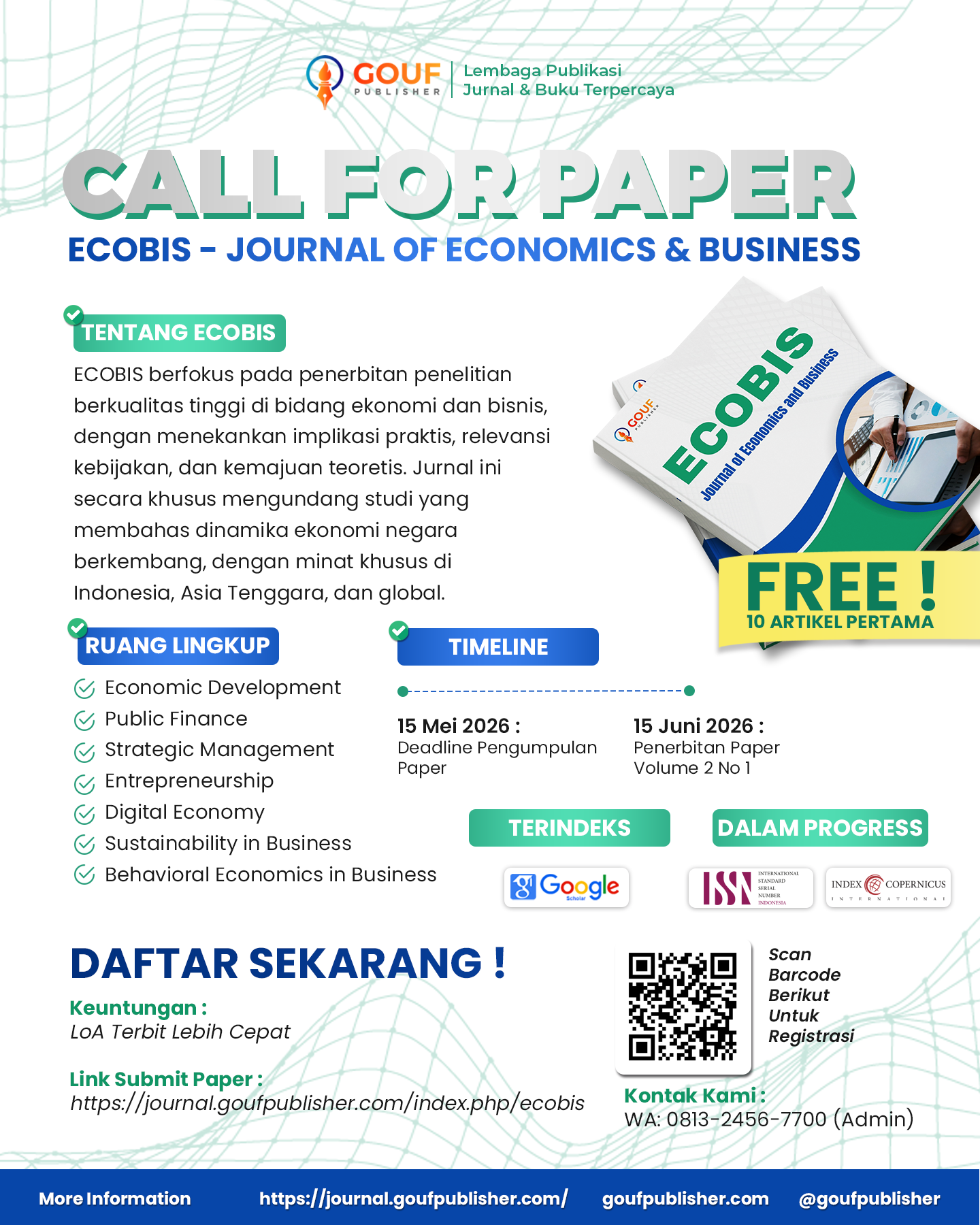 ECOBIS: Journal of Economics and Business focuses on publishing high-quality research in the fields of economics and business, emphasizing practical implications, policy relevance, and theoretical advancements. The journal specifically invites studies addressing the dynamics of emerging economies, with a special interest in Indonesia, Southeast Asia and global.
